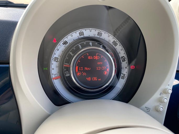 This Fiat 500 3 door registration RO20MRV has a Petrol engine with a Manual gearbox and boasts impressive fuel consumption of 53.3 mpg and is finished in the colour Blue. The CO2 emissions are extremely low at just 88 g/km.
