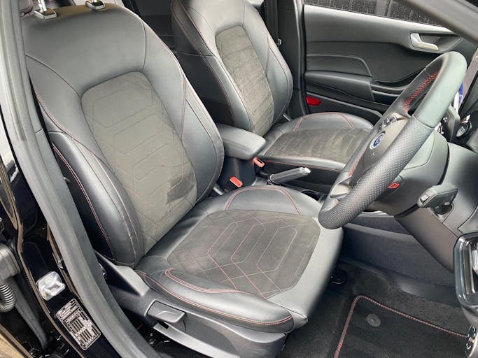 SYNC 3 with Navigation, Sensco Partial - Black with Red Stitching, 18in Alloy Wheels - 5x2-Spoke with Pearl Grey Machined Finish, Full Digital 12.3in Instrument Cluster, DAB Radio, Apple Car Play, Android Auto, Air Conditioning - Electronic Automatic Temperature Control - EATC, Cruise Control includes Speed Limiter and Intelligent Speed Assistance, Winter Pack, Heated Front Seats, Heated Steering Wheel, Steering Wheel - ST-Line 3-Spoke Sensico-trimmed Flat-bottomed with Red Stitching, Unique ST-Line Grille - Full Bodystyling Kit, and Large Body Coloured Rear Spoiler, Sports Seats, Door Mirrors - Heated - Electric - Integrated Side Indicators - Body Coloured, Parking Distance Sensors - Rear, Rear Privacy Glass, Rear View Camera, Ford Key Free System - Keyless Entry with Keyless Start, Quickclear Heated Windscreen, Selectable Drive Modes, Automatic Rain Sensing Wipers and Auto-Dimming Rear View Mirror, Lane-Keeping Aid with Lane-Keeping Assist, Thatcham Category Alarm with Power Door Deadlocks