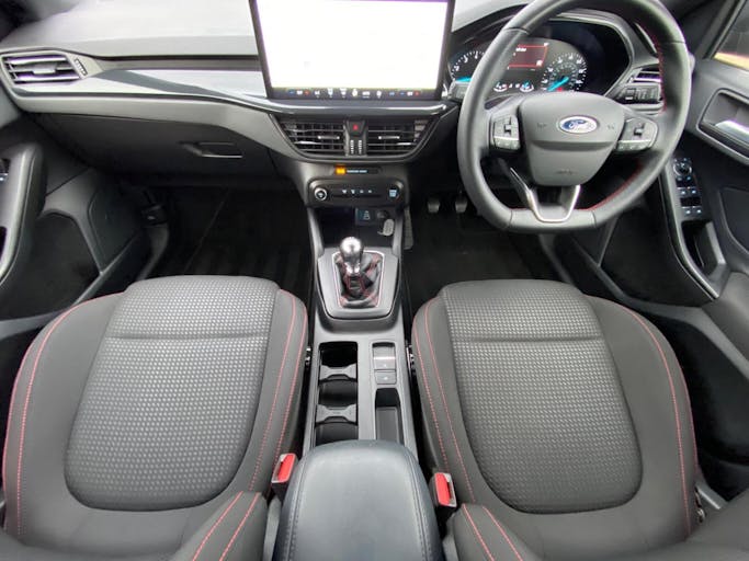 Cloth - Black with Red Stitching, 17in Alloy Wheels - 5-Spoke with Rock Metallic Finish, Ford SYNC4 Navigation with 13.2in Touchscreen, 4.2in Colour TFT Ice Blue Illumination Analogue Cluster with Trip Computer, DAB, Apple car play, Android Auto, Cruise Control with Adjustable Speed Limiter, DEATC - Dual-Zone Electronic Automatic Temperature Control, Gearshift Knob - ST - Aluminium, Steering Wheel - 3-Spoke Sensico Trimmed with Integrated Audio Controls, Unique ST-Line Grille and Full Bodystyling Kit - Large Body Coloured Rear Spoiler, Front Seats - Sports Style V-shape with High Bolster, Door Mirrors - Electrically-Operated - Heated - Power-Foldable - Puddle Lights - Side Indicators, Parking Sensor - Front and Rear, Ford Key Free System - Keyless Entry with Keyless Start, Electric Parking Brake, Rear Privacy Glass, Quickclear Heated Windscreen, Selectable Drive Mode, Sports Tuned Suspension, Headlights - Automatic On-Off, Automatic Dimming Rear View Mirror, Rain Sensitive Windshield Wipers, Windows - Electrically Operated Front and Rear with One Touch Opening and Closing, Intelligent Speed Assistance, Lane-Keeping Aid with Lane-Keeping Assist, Pre-Collision Assist with Autonomous Emergency Braking and Pedestrian-Cyclist Detection, Thatcham Category Alarm with Power Door Deadlocks