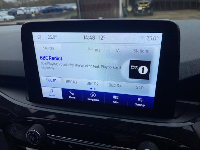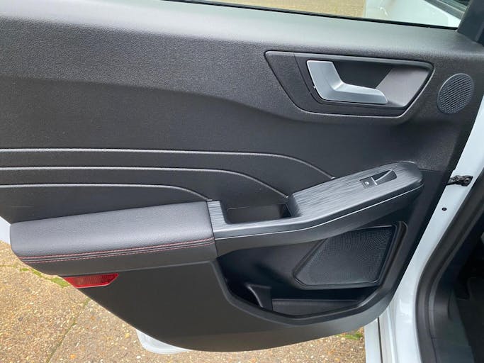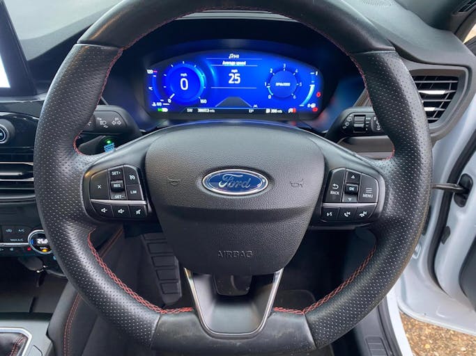 Partial Sensico - Rapton Cloth - Ebony with Red Stitching, 19in Alloy Wheels - 5x2 Spoke - High Gloss - Machined, Power Opening Panoramic Roof, Full Digital 12.3in Instrument Cluster, Satellite Navigation - Navigation Center, FordPass Connect, B and O Premium Audio System with Large Instrument Cluster, Mobile Phone Wireless Charging Pad, Cruise Control with Adjustable Speed Limiter, Dual Zone Electronic Automatic Temperature Control - DEATC, Heated Driver and Passenger Seats, Heated Rear Seats, Heated Steering Wheel, 10-Way Power Adjustable Drivers Seat, ST-Line Bodystyling Kit, ST-Line Leather Gear Knob, Sports Seats, Flat Bottom Steering Wheel in Sensico with Red Stitching, Gear Shift - Unique Leather Trimmed Knob with Satin Aluminium Insert and Red Gaiter Stitching, Aluminium - Finish Front Scuff Plates with ST-Line Script, Heated and Power Folding Door Mirrors with Puddle Lights, Front and Rear Parking Sensors, Handsfree Power Tailgate, Ford Key Free System with Ford Power Start Button - Keyless Start, Rear View Camera, Privacy Glass, Black Roof Rails, Quickclear Heated Windscreen, Selectable Drive Modes, Full LED Headlamps, Automatic Headlights with Auto High-Low Beam, Auto Dimming Rear View Mirror, Auto Wipers, Lane Keeping Aid with Lane Departure Warning, Thatcham Category 1 Perimeter and Volume Sensing Alarm