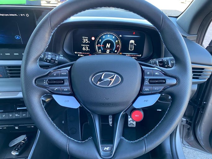 18in Alloy Wheels - Matt Grey, Centre Console Display - 10.25in Touchscreen Satellite Navigation - Traffic Messaging Channel - Mapcare - LIVE Services, Supervision Instrument Cluster - 10.25in, BlueLink, DAB Digital Radio, Bluetooth Connectivity, Phone Connection - Apple CarPlay, Phone Connection - Android Auto, Speakers - 2 Tweeters - 2 Front - 2 Rear, Wireless Phone Charging Pad, Climate Control with Automatic De-Fog System for Front Windscreen, Cruise Control with Speed Limiter, Heated Front Seats, Heated Steering Wheel, Interior - Black N Exclusive, Leather Wrapped Gear Knob with N Logo, Leather Wrapped Steering Wheel with N Logo, Door Mirrors - Electric Adjustment and Heated with Power Folding Function, Parking Sensors - Rear, Rear View Camera with Dynamic Limitation Signalling, Smart Key - Keyless Entry with Engine Start-Stop Button, Privacy Glass - Rear Side Window and Tailgate, Launch Control, N Custom Mode, N REV Matching - Double-declutching Function, Automatic Dimming Rear View Mirror, Automatic Headlights with Dusk Sensor, Automatic Windscreen Wipers with Rain Sensor, High Beam Assist, Driver Attention Alert - DAA, Intelligent Speed Limit Warning - ISLW, Lane Departure Warning System with Lane Keeping Assist