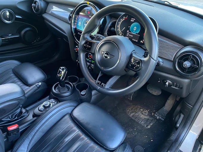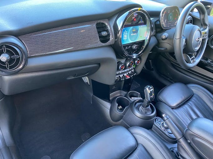 17in Alloy Wheels - Roulette Spoke, Navigation Pack, Comfort Pack, MINI Yours Lounge Leather - Carbon Black, Interior Trim - Silver Chequered, Roof and Mirror Caps - Black, Darkened Rear Glass, 8.8in Touchscreen with LED Ring, FM Tuner and DAB Digital Radio, Bluetooth for Compatible Mobile Phone - with Audio Streaming, Apple Car Play, 4 Speakers - in Front Door Trims and Underneath Front Seats, Cruise Control with Brake Function, Climate Control, Heated Front Seats, Walknappa Leather Steering Wheel with Grey Seam, Leatherette Gearshift Lever and Handbrake Gaiters, Multifunction Controls for Steering Wheel, Gearshift Paddles, Door Sill Strips - Metal with Cooper S, PDC - Park Distance Control - Rear, Automatic Headlight Activation Switch, Rain Sensor Window Wipers, Electric Windows - Front, Alarm System